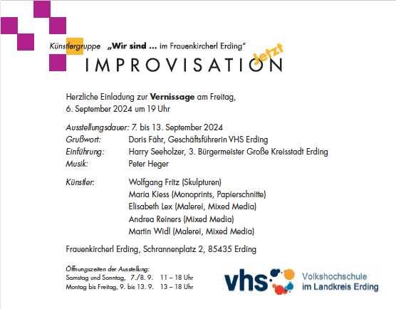Vernissage findet am 6. September 2024 um 19.00 Uhr statt. Herzlich